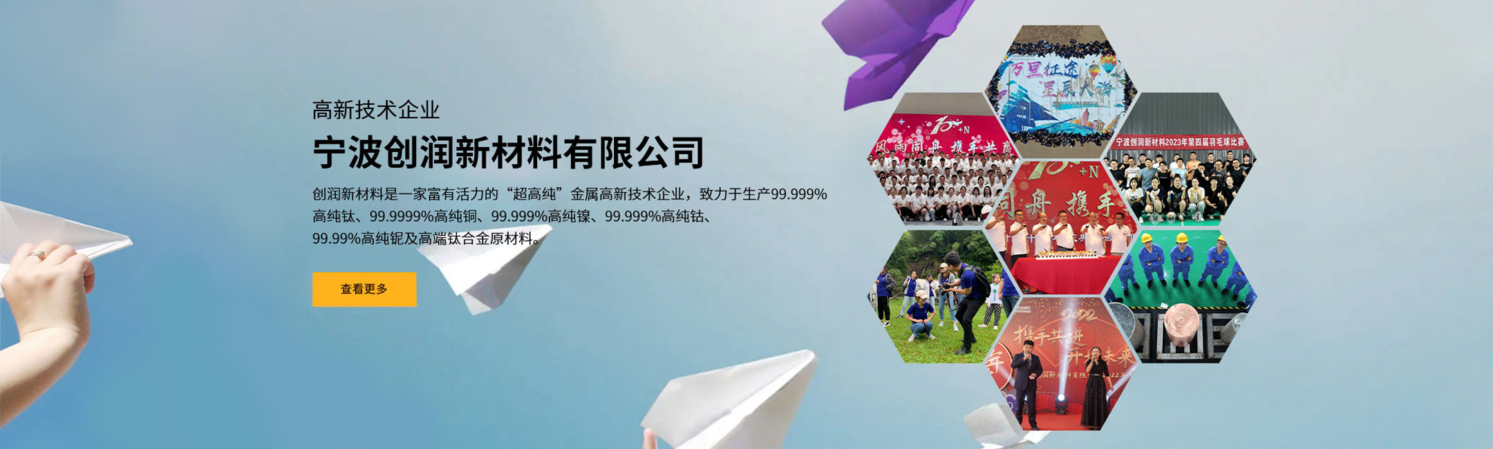 創(chuàng)潤新材料是一家富有活力的“超高純”金屬高新技術(shù)企業(yè),致力于生產(chǎn)超高純金屬原材料。產(chǎn)品涉及半導(dǎo)體靶材,航空發(fā)動機(jī),生物醫(yī)療用高純金屬, 軍工用特殊性能材料等。是國內(nèi)唯一的超高純鈦金屬產(chǎn)業(yè)生產(chǎn)基地,使中國躋身為世界上僅有的三個擁有該技術(shù)和產(chǎn)線的國家之一。經(jīng)過多年的市場開拓與客戶驗證,創(chuàng)潤逐步形成了超高純鈦、銅、鎳、鈷、鈮及高端鈦合金產(chǎn)品體系。